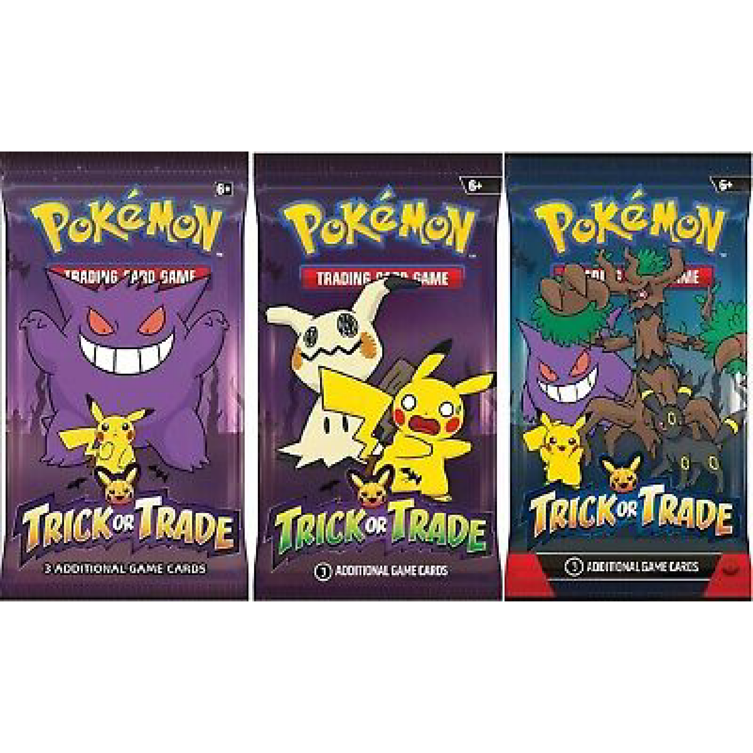 With a purchase of at least €150 worth of Pokémon TCG products, you will receive 1x Pokémon Trick or Trade 2022 BOOster , 1x Pokémon Trick or Trade 2023 BOOster and 1x Pokémon Trick or Trade 2024 BOOster . Cannot be combined with other offers.